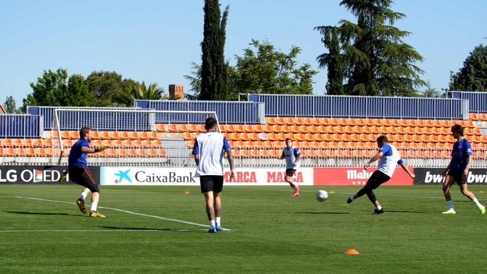 Los jugadores del Atlético continúan entrenando en grupos separados