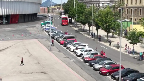 Imágenes de los jugadores del Atheltic, que llegan a San Mamés en dos autobuses para disputar con el Atlético de Madrid la vigésimo octava jornada tras reanudarse la Liga.