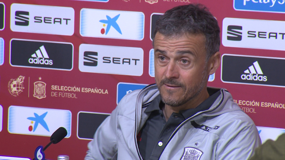 Imágenes del seleccionador nacional de fútbol, Luis Enrique Martínez en rueda de prensa.