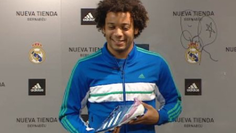 El lateral madridista, Marcelo Vieira, ha presentado sus nuevas botas en la tienda Adidas del Bernabéu. Además, ha recordado que "la afición sueña con la Décima" y reconoce que la semifinal de Champions será muy complicada ya que "ellos son un equipo muy bueno y muy fuerte".