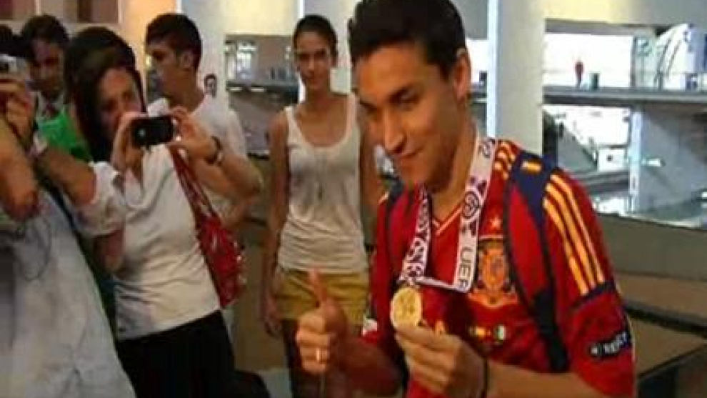 El futbolista del Sevilla, Jesús Navas, ha regresado a Sevilla tras proclamarse campeón de la Eurocopa con la selección española y se ha mostrado muy "contento" por el triunfo en el campeonato.Navas llegaba a la estación de Santa Justa de la capital hispalense con la camiseta de la selección puesta y la medalla colgada del cuello. "Muy contento por la victoria. A mí lo que me gusta es el fútbol y la selección es lo máximo para un futbolista. Lo que hemos conseguido es único y tenemos que disfrutar de este momento", aseguró a la prensa.