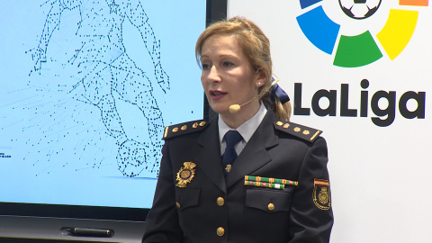 Declaraciones de la comisaria jefa de la Unidad Central de Participación Ciudadana, Isabel Cabello, que durante la presentación de la campaña 'Con el Deporte no se juega', ha explicado que van a utilizar en la campaña todo su "gran despliegue".