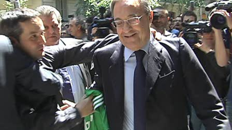El presidente del FC Barcelona, Sandro Rosell y del Real Madrid, Florentino Pérez, presiden hoy la tradicional comida, con representantes de la UEFA, previa al encuentro de semifinales de Champions League, que se disputará hoy en el Camp Nou.