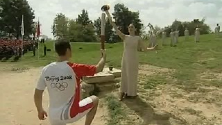 La llama olímpica que alumbrará los Juegos de Pekín fue encendida hoy en una ceremonia en la Antigua Olimpia y emprendió su camino hacia la capital china, a donde llegará el 8 de agosto. El primer portador de la antorcha fue el griego Alexandros Nikolaidis, medallista de plata olímpico en taekwondo.