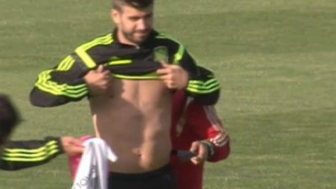 La preparación para el Mundial de la selección española ya ha empezado, salvo para los jugadores del Real madrid y el Atlético. Ha sido esta tarde. Los hombres de Vicente Del Bosque han saltado al terreno de juego de la Ciudad Deportiva de Las Rozas para efectuar el primer entrenamiento. En el horizonte más próximo, el amistoso de Sevilla ante Bolivia del día 30. -Redacción-