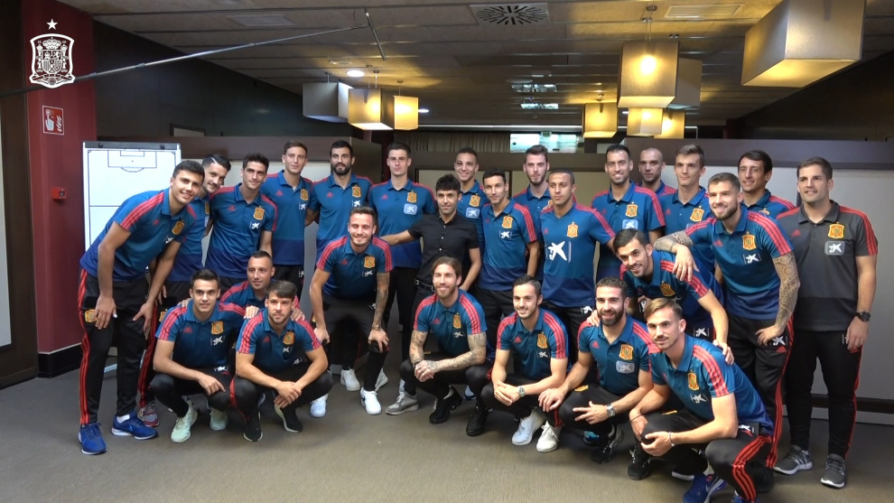 Imágenes de la visita de 'El Mago Pop' a la concentración de la Selección española de fútbol.