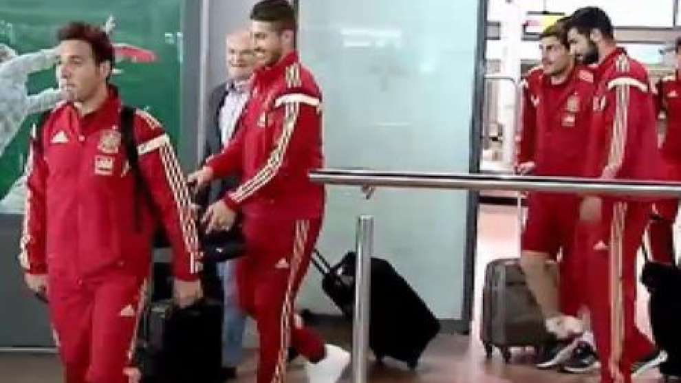 Alrededor de un centenar de aficionados han recibido este domingo a la selección española en el aeropuerto de Peinador, en Vigo, donde La Roja se enfrentará el próximo martes contra la selección de Alemania. El seleccionador nacional, Vicente del Bosque, ha programado un entrenamiento para este domingo por la tarde en el estadio de Balaídos.