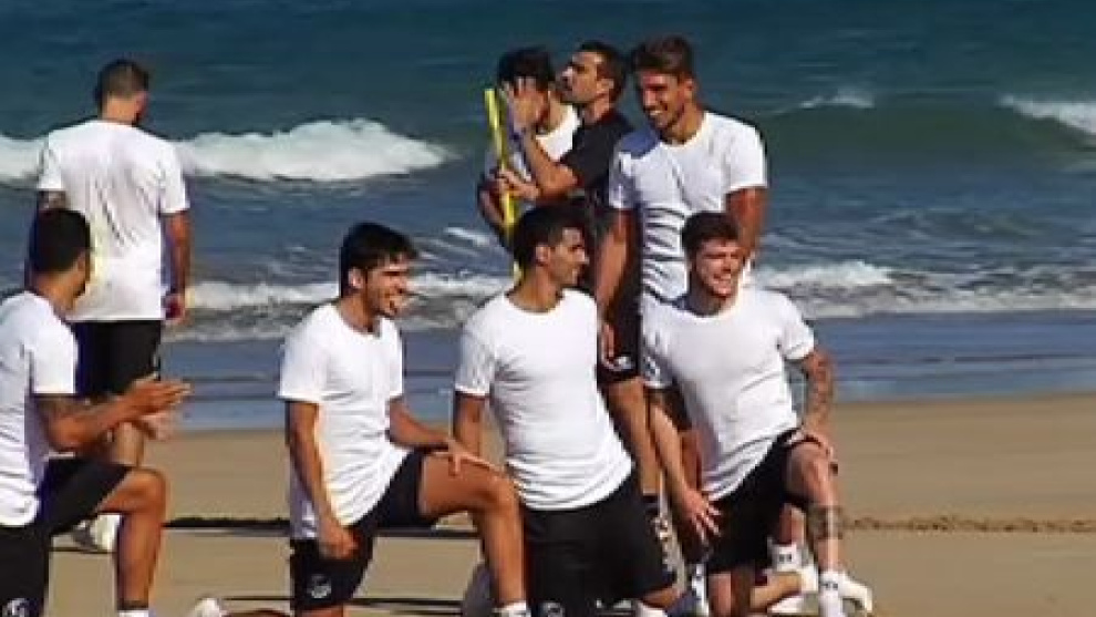 El Sevilla se divierte entrenando en la playa