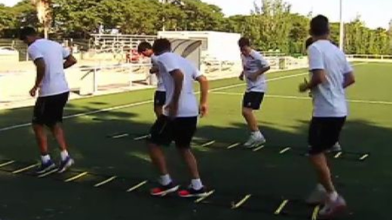 La carga de trabajo sigue aumentando para el Sevilla. Tercer día de concentración en Costa Ballena y quinto día de pretemporada. Este viernes, el equipo ha realizado la única sesión de la jornada en el campo de fútbol. El entrenamiento ha comenzado en el gimnasio, con trabajo de fuerza y potencia. Después, el balón con trabajo técnico-táctico se llevó el protagonismo, con ejercicios defensa-ataque y otros donde la conservación del balón era el objetivo. Una sesión, que aunque ha sido a primera hora de la mañana, ha contado con altas temperaturas, e incluso, funcionaron los aspersores cuando trabajaba el equipo sevillista.