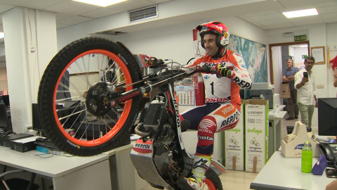 Imágenes del piloto español de trial, Toni Bou que ha visitado las instalaciones de Europa Press.