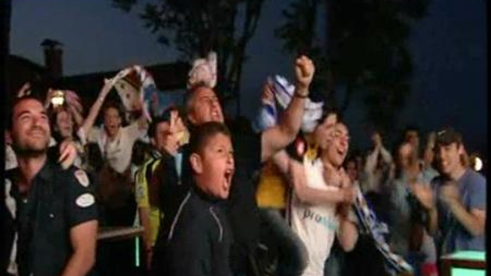 El Real Zaragoza logró ayer una histórica permanencia en Primera División. La victoria en Getafe puso el colofón a la impresionante remontada desde que Manolo Jiménez se hizo cargo del equipo. La afición zaragocista lo celebró por todo lo alto.En Zaragoza, los aficionados que no pudieron desplazarse a Getafe siguieron el partido por las pantallas gigantes instaladas para la ocasión.Los goles de Apoño y Postiga se celebraron con emoción y el pitido final desató la fiesta en la capital aragonesa.Ya bien entrada la noche, un grupo de aficionados recibió al equipo en el estadio de La Romareda para felicitarles por su gesta.