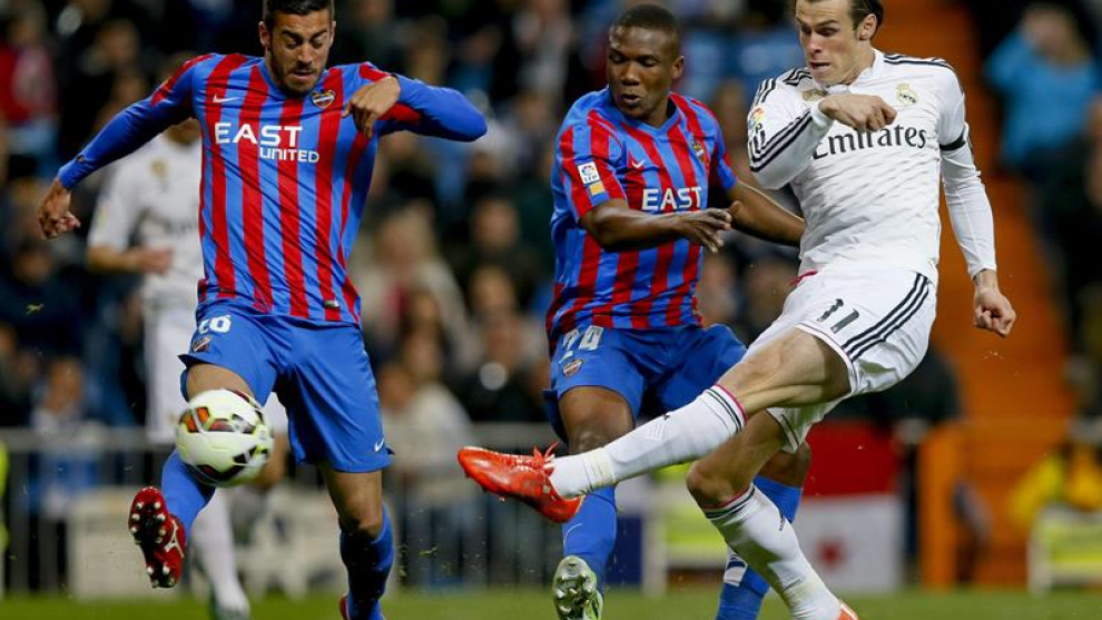 El físico dio para media hora de alta intensidad. Retrocedió metros el Real Madrid para que el Levante tomase un poco de aire, siempre sin peligro con Keylor Navas como un espectador más. Apenas vio un remate de cabeza desviado de Uche, antes de que llegase la sentencia. Fue una acción de estrategia de las que se ven poco por Chamartín. A cinco minutos del descanso Carvajal sorprendía, pase atrás con Cristiano llegando libre de marca y chutando a gol. Cuando el portugués lo celebraba se dio cuenta de que su disparo no iba a puerta y lo había desviado a gol Bale. El galés no lo celebró por respeto a su compañero.