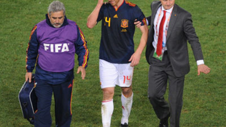 El centrocampista tolosarra del Real Madrid se lesionó en el último encuentro de España en el Mundial de Sudáfrica, ante Chile, por una fuerte entrada que le produjo un esguince de grado I-II en su tobillo izquierdo. En los dos últimos días ha mejorado gracias a la buena respuesta que ha protagonizado al tratamiento fisioterapéutico.