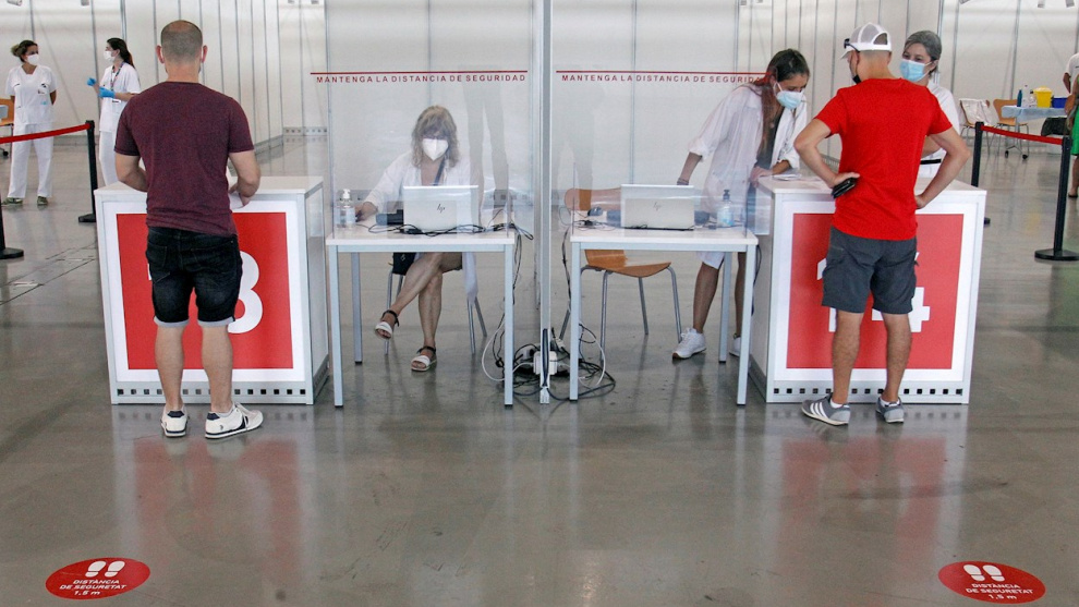 Los adolescentes ya empiezan recalar por los centros de vacunación. En las filas para la anhelada inyección se pueden observar, por primera vez, los rostros con mascarilla de cientos de jóvenes mayores de 16 años que hoy han sido citados para la primera dosis de la vacuna contra la covid-19. El fuerte repunte de casos en las últimas semanas se atribuye en gran medida al comportamiento de jóvenes de todo el país que aprovechan el buen tiempo para celebrar el fin de los exámenes y la vuelta paulatina a la normalidad. Una normalidad que se aleja ante el avance de la quinta ola y la posibilidad de un regreso precipitado a restricciones más duras.