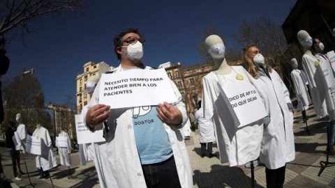 Médicos madrileños se concentran frente a la Consejería de Sanidad para denunciar que