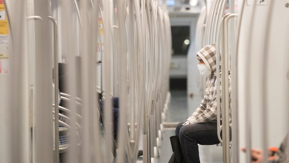 BARCELONA, 01/04/2020.- Un usuario en el Metro de Barcelona. / EFE - MARTA PÉREZ