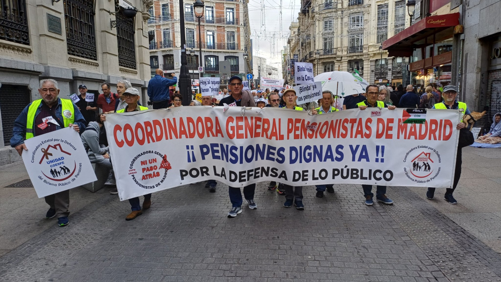 La protesta también ha contado con otras entidades, como el Movimiento de Pensionistas de Euskal Herria (MPEH), el Movimiento Andaluz en Defensa de las Pensiones Públicas (MADPP) o la Coordinadora Estatal de Pensionistas, que han exigido una compensación del 3,8 % que han perdido en los últimos años las pensiones.