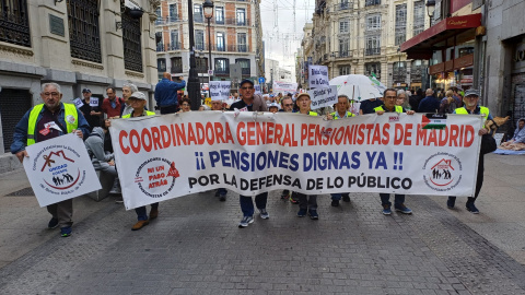 Unos 8.000 manifestantes han protestado este sábado por las calles de Madrid para exigir que las pensiones mínimas se igualen al salario mínimo interprofesional (SMI) y para acabar con la brecha de género, con el objetivo de que estas prestaciones sean "realmente dignas".
