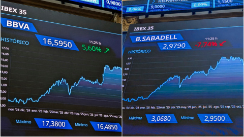 La reacción de la Bolsa tras el fracaso de la OPA: BBVA se dispara un 5,9% y Sabadell pierde un 6,8%