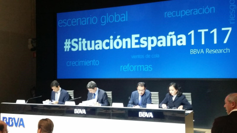 Así figura en el informe 'Situación España' del servicio de estudios de la entidad, presentado este miércoles por el economista jefe del Grupo BBVA, Jorge Sicilia, y el responsable de Análisis Macroeconómico de BBVA Research, Rafael Doménech.