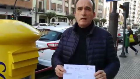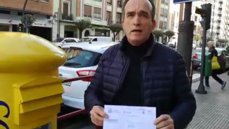 Javier Granda devuelve a Hacienda la carta en la que le comunicaban la revalorización y escribe en el sobre: "El 0,25% es una mierda. Rehusado a su procedencia".