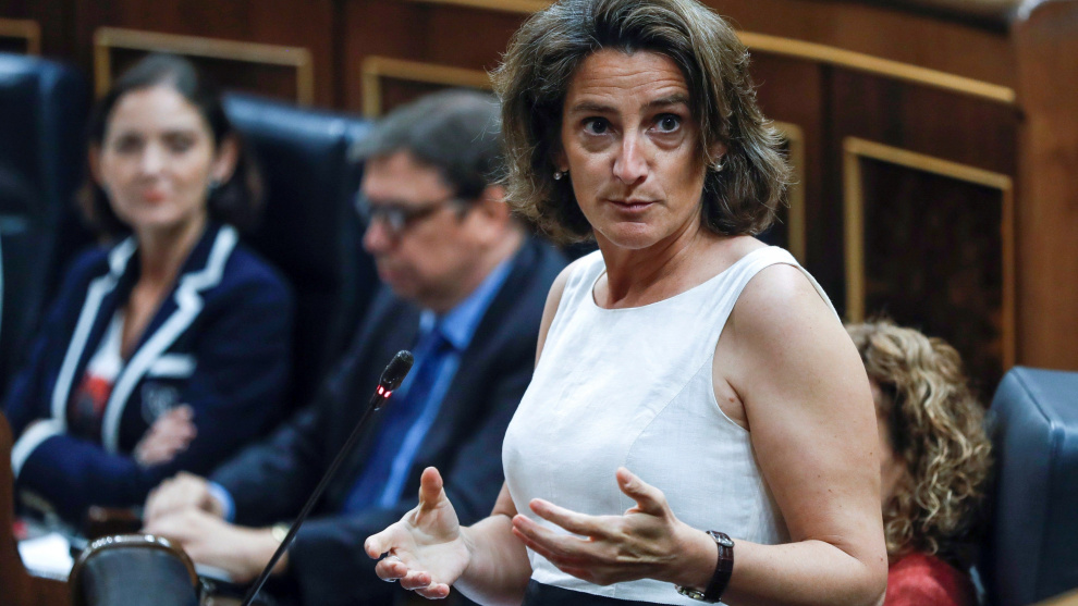 La ministra de Transición Ecológica Teresa Ribera, durante su la sesión de control en el Congreso de los Diputados. EFE/Emilio Naranjo