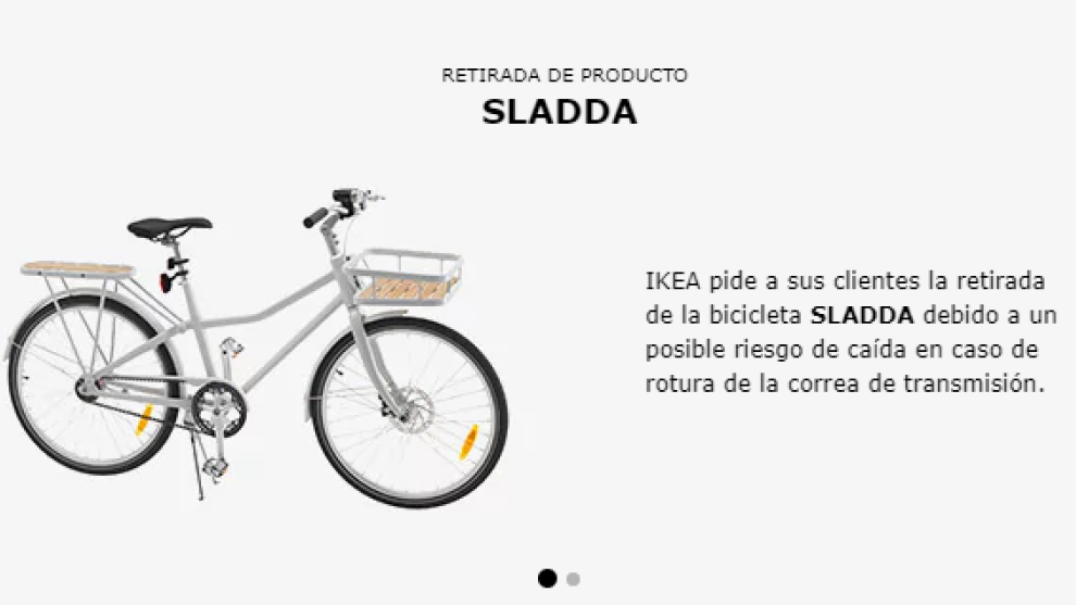IKEA ha decidido retirar del mercado su bicicleta 'Sladda', que lleva más de dos años vendiéndose en más de 26 países, entre ellos España. El vehículo presenta un fallo en la correa de transmisión, lo que podría provocar la caída de quienes hagan uso de ella, tal y como les ha ocurrido a once personas que interpusieron una reclamación a la empresa.