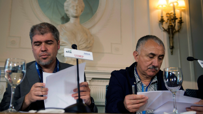 El secretario general de CCOO, Unai Sordo, y el de UGT, Pepe Álvarez, han advertido a la patronal y al Gobierno de que volverán las movilizaciones si no hay acuerdo de salarios y si no se cumplen con los compromisos de la sociedad.