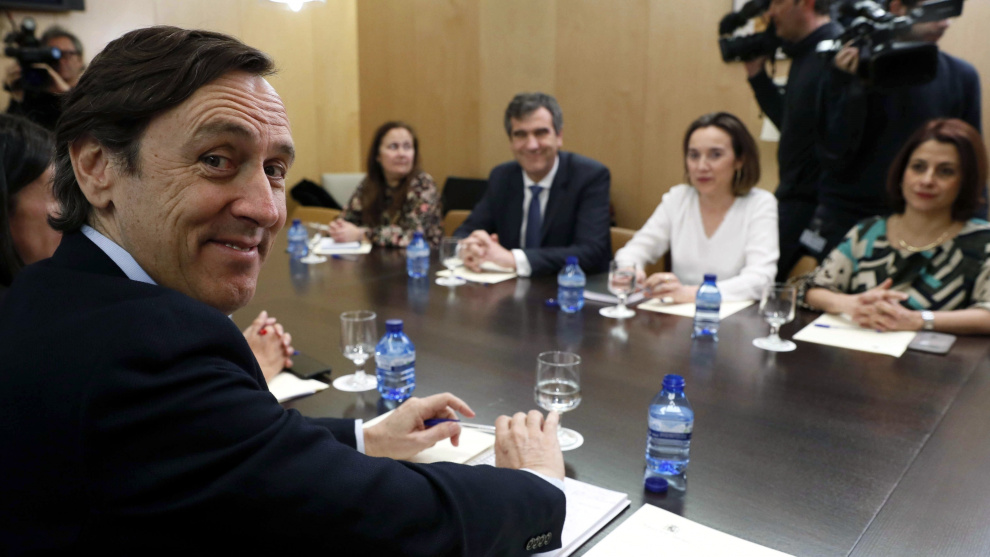 El portavoz del PP en la Cámara Baja, Rafael Hernando, ha explicado esta iniciativa tras reunirse con la alcaldesa de Logroño y vicepresidenta de la Federación Española de Municipios y Provincias (FEMP), la popular Cuca Gamarra; el alcalde de Guadalajara y responsable de política local de la FEMP, Antonio Roldán; la alcaldesa de Teruel, Enma Buj; y el presidente de la Diputación de Segovia, Francisco Vázquez.
