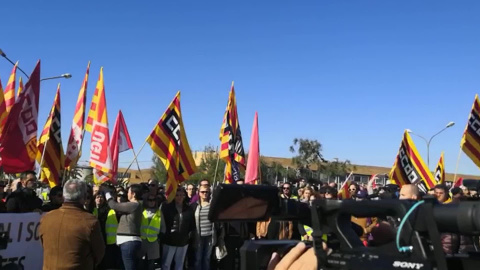 Imágenes de unas 300 personas que han guardado este miércoles un minuto de silencio en La Canonja (Tarragona) durante una manifestación en dirección a la empresa Iqoxe, donde un accidente provocó en enero tres muertos. Este miércoles hay huelga convocada por CC.OO. y UGT de Catalunya y Usoc en la industria petroquímica de Tarragona