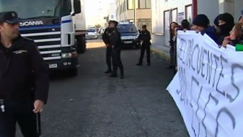 Los trabajadores de la planta pesquera de Freiremar siguen reclamando sus indemnizaciones tras ser despedidos.Escoltados por la policía varios camiones han cargado mercancía de la planta de Vigo en medio de las protestas de los trabajadores. La plantilla, que fue despedida hace tres semanas denuncia que la empresa sigue funcionando pero no les paga lo que les corresponde.