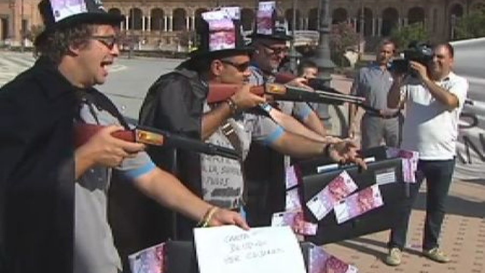 227 trabajadores están pendientes de despido. Inspirándose en Goya, han reproducido un fusilamiento, al que identifican con sus despidos. Lo han hecho en las proximidades de la sede de la presidencia de la Junta de Andalucía para reclamar que termine lo que consideran un abandono político. Acusan a la dirección de la firma de sanitarios Roca de desviar la producción a países con costes laborales más bajos y de desmantelar la planta en la que trabajaban, la de Alcalá de Guadaíra.