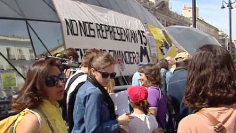 Hasta la Puerta del Sol de Madrid se han acercado hoy decenas de personas para rememorar el 15M. El 15 de mayo de 2011 miles de personas inundaron la plaza con la esperanza de muchos españoles. "Fue un despertar de toda la sociedad para luchar por sus derechos", recuerda uno de los congregados. Hoy dicen que sigue esa lucha y esa otra forma de protesta. De hecho la indignación se ha traducido tres años después en la aparición de algunas candidaturas electorales. Este sabado hay una manifestacion pero el tercer aniversario del 15M culminará el 25 de mayo, día de las elecciones europeas.