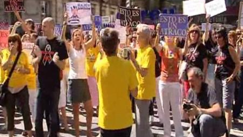 Unos 200 funcionarios de justicia protestan a la sede del PP