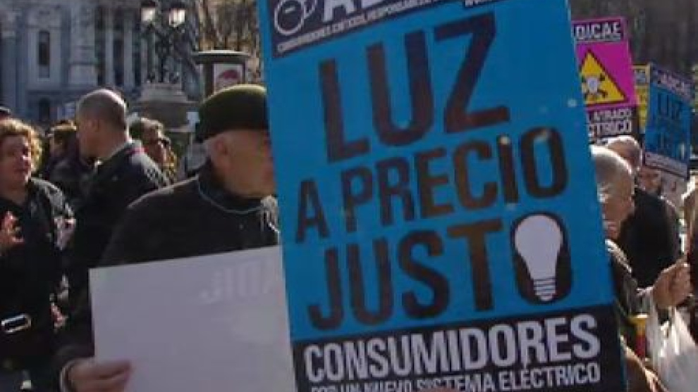 Gritos contra la banca y carteles reclamando una Luz a precio justo. 23 ciudades españolas se han movilizado para protestar contra la subida de un sector basico como es la luz.En el utlimo trimestre la tarifa de la luz ha subido un 2,3 por ciento.lo que supone que las familias españolas pagan 20 euros mas al mes en su factura. Los cortes electricos aumentan y por eso reclaman y proponen la puesta en marcha de una mesa social para lograr tarifas de luz mas justas y sostenibles.
