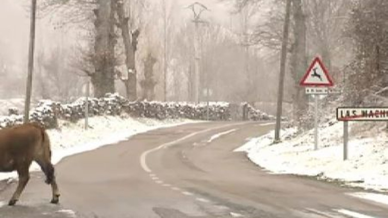 La nieve obliga al uso de cadenas en una treintena de puertos y carreteras de la red vial. La cota ha bajado de los seiscientos metrros en el norte, dejando copos en muchoas provincias sobre todo de castilla y león, el cantábrico y Navarra.
