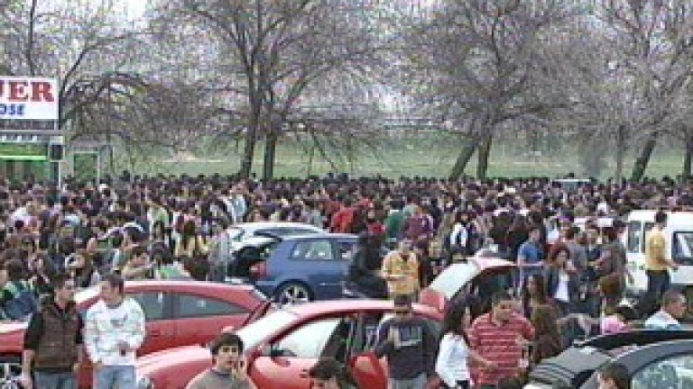 La concentración espontánea comenzó mediada la mañana y alcanzó su máximo punto de concentración entre las 15.30 horas y las 17.30 horas, cuando las estimaciones de la Policía Local elevaban a 6.000 el número de jóvenes que practicaban el 'botellón'.