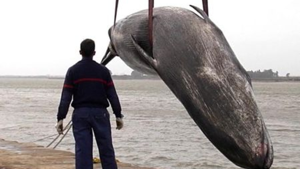 Tenso momento que se ha vivido este lunes cuando una ballena de siete metros de largo ha tenido que ser remolcada al puerto de Huelva. Tenso, porque no es habitual ver un animal de estas características en la zona. Los vecinos han hecho fotografías con sus cámaras como si en vez de una ballena se tratase del remolque de un ovni. El animal había quedado varado en la ría y aunque la rescataron con vida murió poco después debido al mal estado en el que se encontraba.
