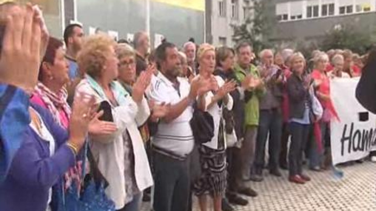 Amigos y familiares del etarra Josu Uribetxeberria Bolinaga se han concentrado hoy a las puertas del Hospital de Donostia a la espera de recibir la noticia sobre la situación de Bolinaga que se encuentra ingresado en este centro, donde está siendo tratado de un cáncer terminal. Aplausos y abrazos de euforia en el hospital Donosti al conocer la decisión del juez Castro que ha decidido finalemnte dejarlo en libertad condicional, en contra del criterio de la Fiscalía que se mostraba contraria a aplicar esta medida. La Fiscalía podrá recurrir esta decisión ante la sala de lo penal de la Audiencia Nacional, por tanto ésta no será efectiva hasta que sea firme.