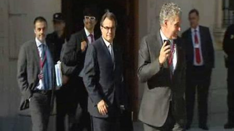 El president de la Generalitat de Cataluñ¡nya, Artur Mas, ha abandonado las instalaciones del Senado al término de la Conferencia de Presidentes sin hacer declaraciones, tal y como estaba previsto. Artur Mas se ha marchado sin pararse ante la nube de periodistas que le esperaba para intentar arrancarle una valoración del encuentro. Sólo ante la insistencia de los periodistas y antes de entrar en su coche oficial ha dicho: "Hablaré mañana". El catalán ha sido el único mandatario autonómico que no ha comparecido en rueda de prensa tras la V Conferencia de Presidentes.