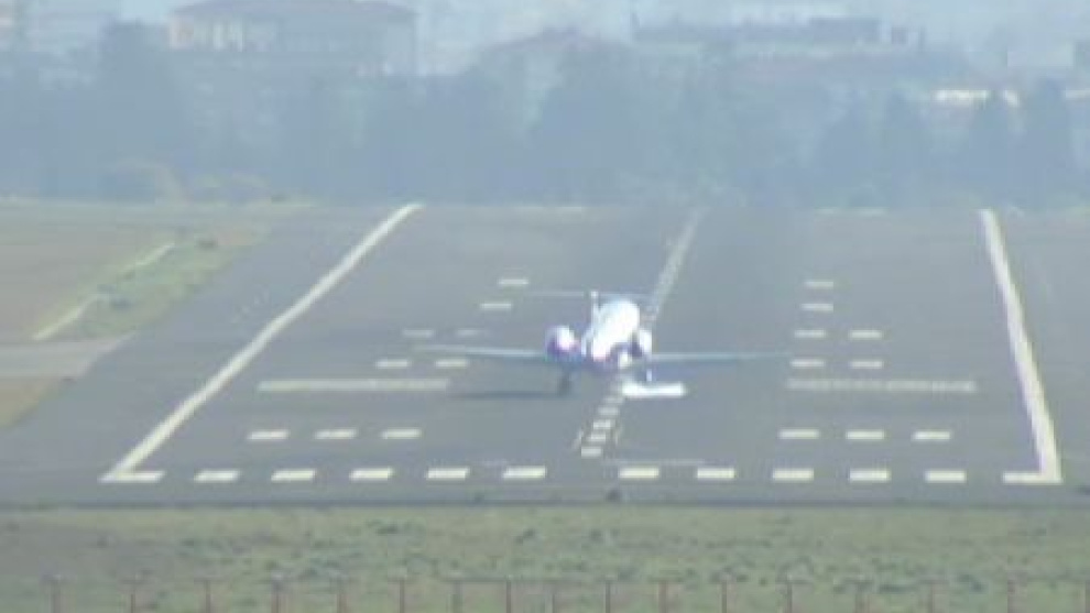 Con rachas de viento de hasta 70 kilómetros por hora la habilidad de los pilotos se hace evidente con estas imágenes. Es el aeropuerto de Bilbao, donde el fuerte viento ha obligado a realizar complicadas maniobras a la hora de tomar tierra. Los pilotos han mostrado su destreza con pulso firme. Los pasajeros solo podían agarrarse al asiento y esperar que el mal trago se pasase.