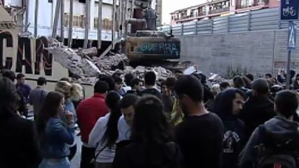 Esta tarde decenas de personas se han concentrado frente al edificio desalojado de Can Vies. Han tirado una valla pero nadie ha entrado en el edificio medio derruido. Los operarios han tenido que despejar hoy las improvisadas trincheras y los restos de los 62 contenedores que ardieron durante la noche, y con agua a presión, limpian los cristales de la decena de escaparates que quedaron destrozados. Al día siguiente toca hacer balance de daños. En la principal avenida del barrio de Sants, no hay banco ni caja de ahorros sin destrozos. En todos hay que reparar cajeros y cambiar cristales. Algunos, por segundo día consecutivo. Tres noches de disturbios y daños por valor de 155.000 euros en el mobiliario urbano. -Redacción-