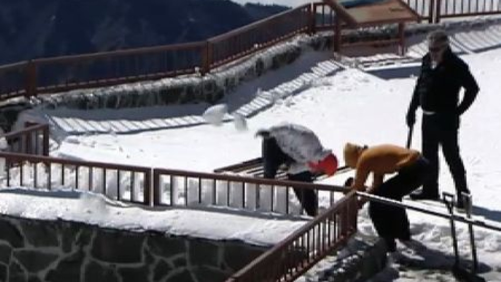 Tras varios días de mal tiempo, el teleférico del Teide ha vuelto a estar operativo. Cientos de personas han utilizado ese servicio para contemplar la nieve en las laderas del Teide.