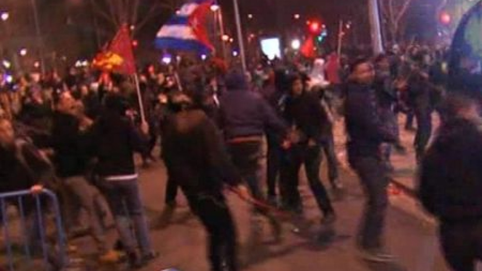 La tarde ha transcurrido con tranquilidad en el corazón de Madrid. Las marchas de la dignidad han llegado a primera hora, ambiente festivo y reivindicativo; el acto de manifiesto del movimiento se ha desarrollado sin incidentes hasta que la Policía ha cargado contra un grupo de personas que pretendía acampar en la plaza de Colón. Los primeros enfrentamientos entre estos manifestantes, algunos con el rostro tapado, y los agentes no se ha hecho esperar. Petardos, movimiento de vallas para tratar de hacer barricadas y cargas de los agentes para intentar dispersar al grupo en cuestión con el que ha surgido el primer roce tras un día de manifestación pacífica.