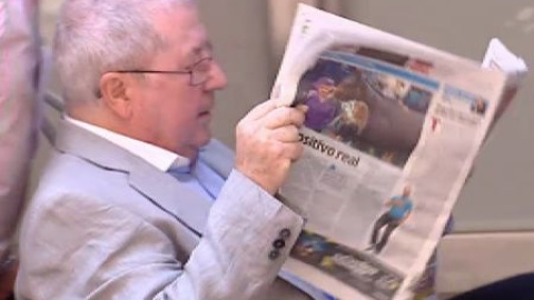 EL CARGO DE TESORERO REGIONAL EN EL PP, ES EXCLUSIVAMENTE DECORATIVO... AL MENOS ES LO QUE HA DICHO EL EXTESORERO POPULAR DE CASTILLA LA MANCHA... LAMBERTO GARCÍA, HA ENTRADO Y SALIDO DE LA AUDIENCIA NACIONAL DE LA MISMA MANERA: EN SILLA DE RUEDAS, POR UNA LESIÓN, Y PARAPETADO TRAS UN PERIÓDICO... DICE QUE NO CONOCE A NADIE, NI A BÁRCENAS, NI A LA PUERTA, Y APENAS A COSPEDAL A LA QUE FUE PRESENTADO EN UNA OCASIÓN... ASEGURA QUE TAMPOCO NO SABE NADA DE LOS 200.000 EUROS QUE PRESUNTAMENTE PAGÓ LA EMPRESA SUFÍ AL PP A CAMBIO DEL CONTRATO DE BASURAS DE LA CIUDAD DE TOLEDO.. Y ESO QUE TAMBIÉN ERA CONCEJAL DE HACIENDA....