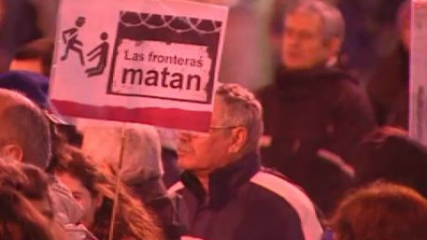 Cientos de personas se han concentrado en la Puerta del Sol de Madrid para recordar a los 15 inmigrantes que perdieron la vida el pasado jueves intentando alcanzar a nado Ceuta desde Marruecos y en contra de la política de inmigración y el papel que desempeñaron los agentes de la Guardia Civil. Durante el acto se han escuchado lemas como "Ninguna persona es ilegal" o "abajo los muros de las fronteras".