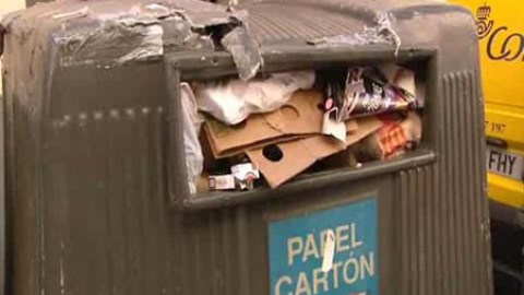 Los contenederos de reciclaje en Madrid están a rebosar