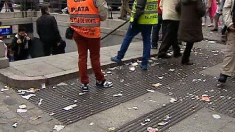 En el cuarto día de huelga, las papeleras que siguen en pie están a rebosar, el resto están por los suelos. Muchos madrileños se quejan de que el destrozo de las papeleras y contenedores ya ha costado 216.000 euros. Las reuniones continúan, pero el acuerdo no llega.En los puntos más emblemáticos de Madrid los turistas tienen que esquivar los montones de basura. En la puerta del Sol las fotos no salen como esperaban y el barrio de las letras despierta sucio. El museo del prado tampoco es ajeno a la huelga. Las zonas más turísticas se estan viendo afectada por la falta de limpieza.