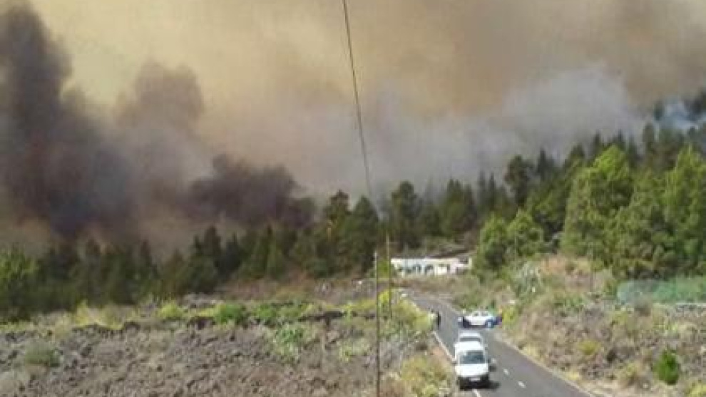 Unas cien personas han sido desalojadas de sus viviendas como consecuencia del incendio forestal que se registra en el municipio palmero de El Paso. Se ha declarado este mediodía en un pinar del municipio y se está extendiendo rápido por los fuertes vientos y las altas temperaturas. Hay ya un centenar de desalojados de varios pueblos.