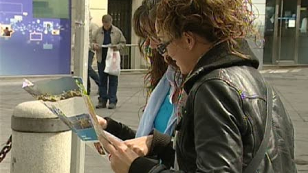 Una turista francesa ha admitido que están "un poco disgustados" por no haber podido ver ninguna procesión en la calle, ya que habían venido a Sevilla para eso y ha añadido que están pendientes de que salgan las del Sábado Santo.